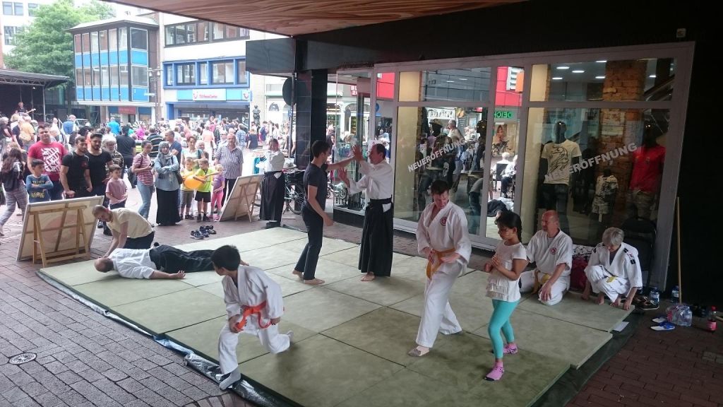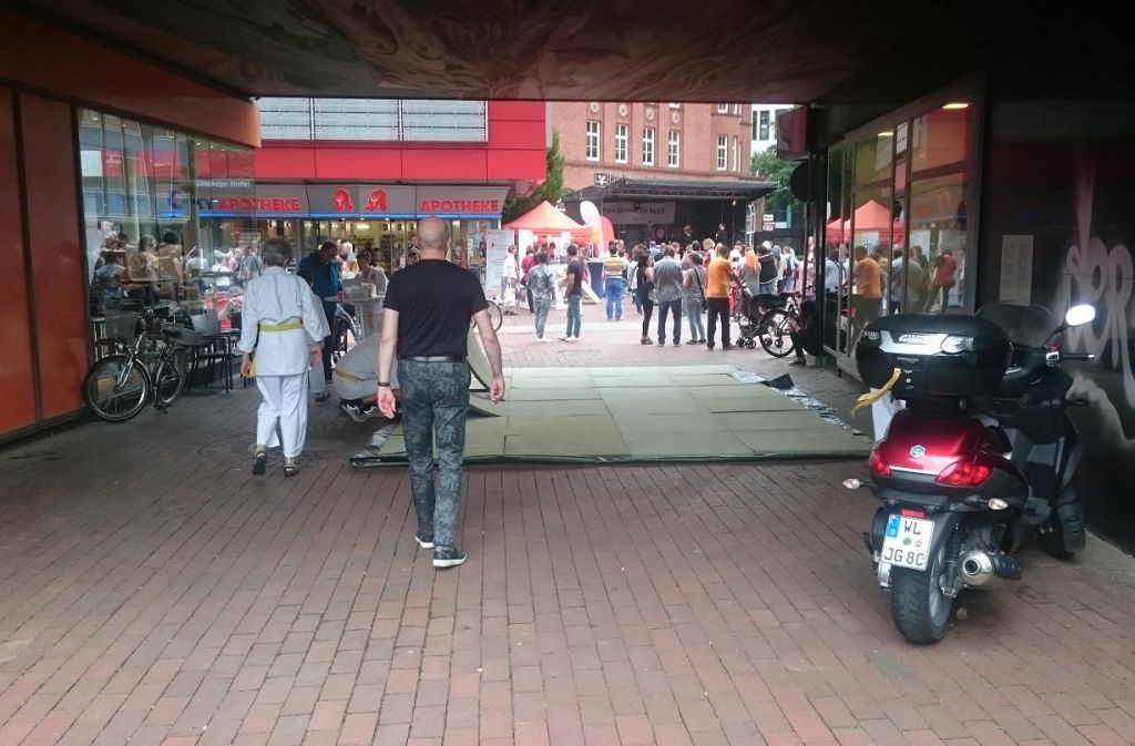 An diesem Sonntag fand in der Harburger Innenstadt die Veranstaltung "Eine Bühne für alle" statt und die Geschäfte waren geöffnet. In diesem Rahmen hatten wir die Gelegenheit das Aikido und uns als Verein zu präsentieren.